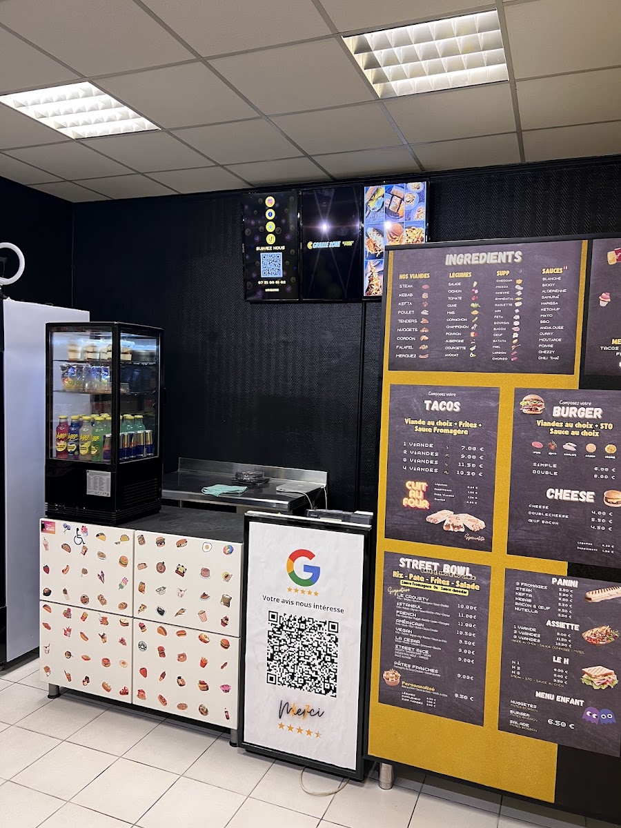 From a reviewer’s perspective, the menu at Graille Zone offers a straightforward yet appealing selection centered around customizable comfort food. The Menu GZ highlights their core concept, built on quality ingredients (“Nos Ingrédients”) and flexible combo deals (“Formules +”), giving diners the option to tailor meals to their appetite. The standout items are clearly the Nos TACOS, which form the heart of the menu with their rich, indulgent fillings, alongside the classic Nos BURGER, delivering familiar flavors with a satisfying twist. For those seeking something lighter or more portable, the Nos Sandwiches provide a convenient alternative without sacrificing taste. While specific prices are not listed here, the structure of the menu suggests accessible, value-driven options designed for casual dining, making Graille Zone a solid choice for anyone craving hearty, customizable fast-food-style meals.
